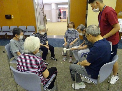 トレーナーも加わり、落とさないようにそ~っと息を合わせます。