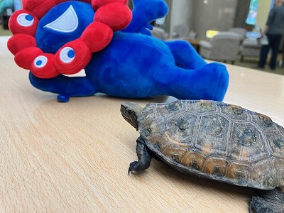 箕面の看板カメのジェームス君もミャクミャクちゃんと記念撮影(^_-)-☆