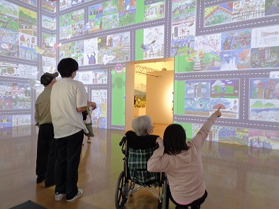 まずは、兵庫県の小学生が描いた街の絵を鑑賞。「みんなじょうずやね~」と感心されていました。