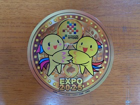 最後に、はばタンが描かれた公式スタンプとシールをお土産に。はばたんとミャクミャクと記念撮影もできました。