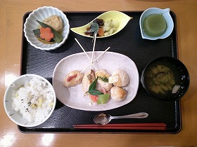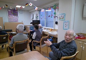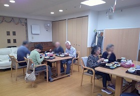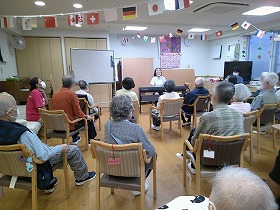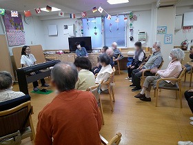 食事の後は 音楽療法で秋の歌を楽しみました。