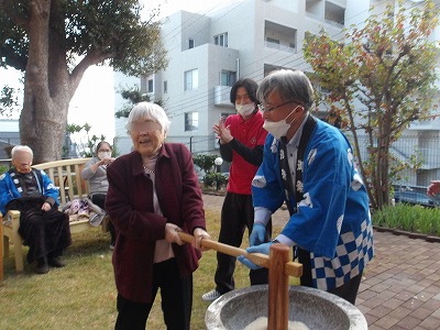 「ええわええわ」と遠慮がちだった方も、杵を持つと自然と笑顔で「よいしょ」。
