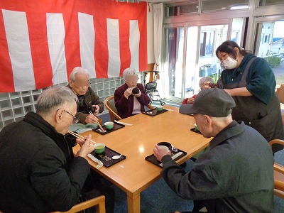 つきたてのお餅はぜんざいに。甘さにほっこり、餅つきの疲れもとれました!