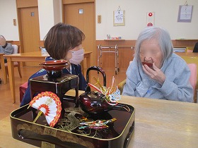 新年のご挨拶と、無病息災を祈り、お屠蘇を召し上がっていただきました。