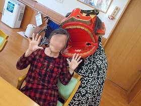 お昼からは獅子舞がやってきて、厄除けに頭を噛んでもらいました。