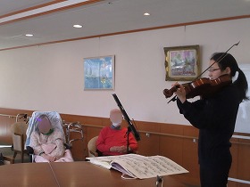 お祖母様始めご入居者の皆様は、ヴィオラの素敵な音色にうっとりされていました。