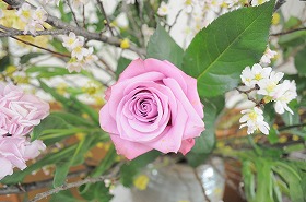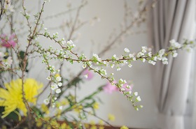 花の種類は山茱萸(さんしゅゆ)・東海桜・バラ スウィートデュウ・菊 カブレラ