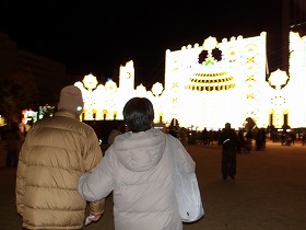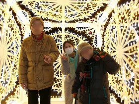 そこから少し東遊園地を散策。イルミネーションの中に入り光に囲まれます。