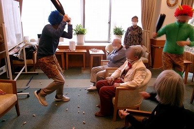 皆様で豆を投げ「鬼は外~」と鬼退治