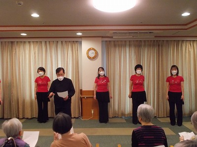 途中ご入居者の皆様と「青い山脈」を合唱しました。