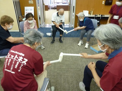 トレーナーも加わり、落とさないようにそ~っと息を合わせます。