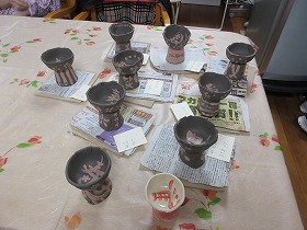 毎月恒例の陶芸教室では“馬上盃”作りに挑戦✌