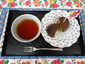 サツマイモのロールケーキと紅茶を召し上がっていただきました。