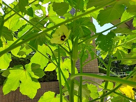 しかし、オクラだけがマイペースに実と黄色いお花をつけ