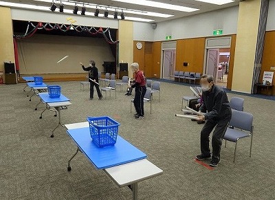 みなさんには、お手玉を的にめがけて投げてもらいました!