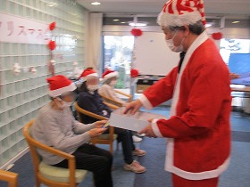 サンタさんから一人ひとりにクリスマスプレゼントをお渡しすると「ありがとう」「わ~うれしい」と