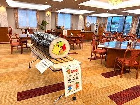 方角がわかりやすいように、大きな恵方巻が2本も登場!