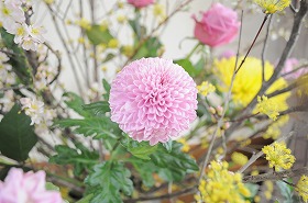ピンク色と黄色がメインの春らしいアレンジメントを活けてくださいました。