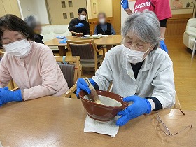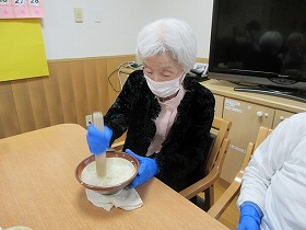 季節行事としてご利用者と一緒に牡丹餅づくりを楽しみました。