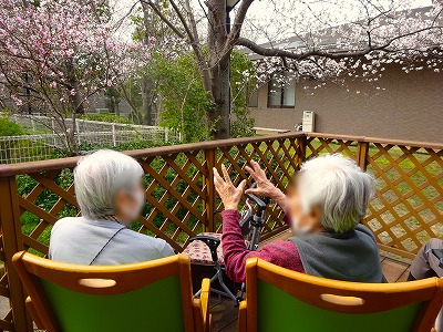 ケアセンター横のお庭にてお花見に行かれました。