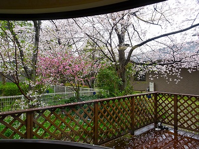 4月4日は午前中から雨の為、お庭には出ずにサロンの中からガラス越しに